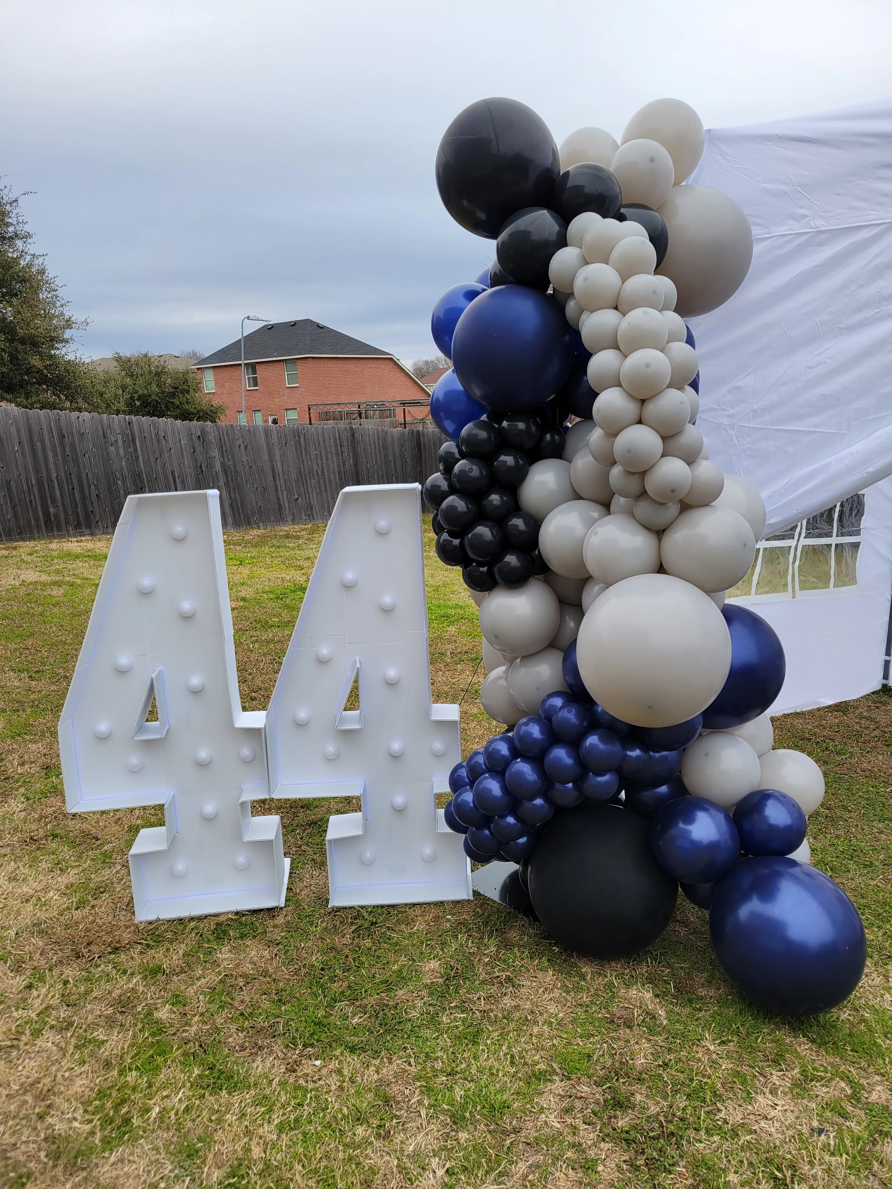 Organic balloon column w/ number marquee