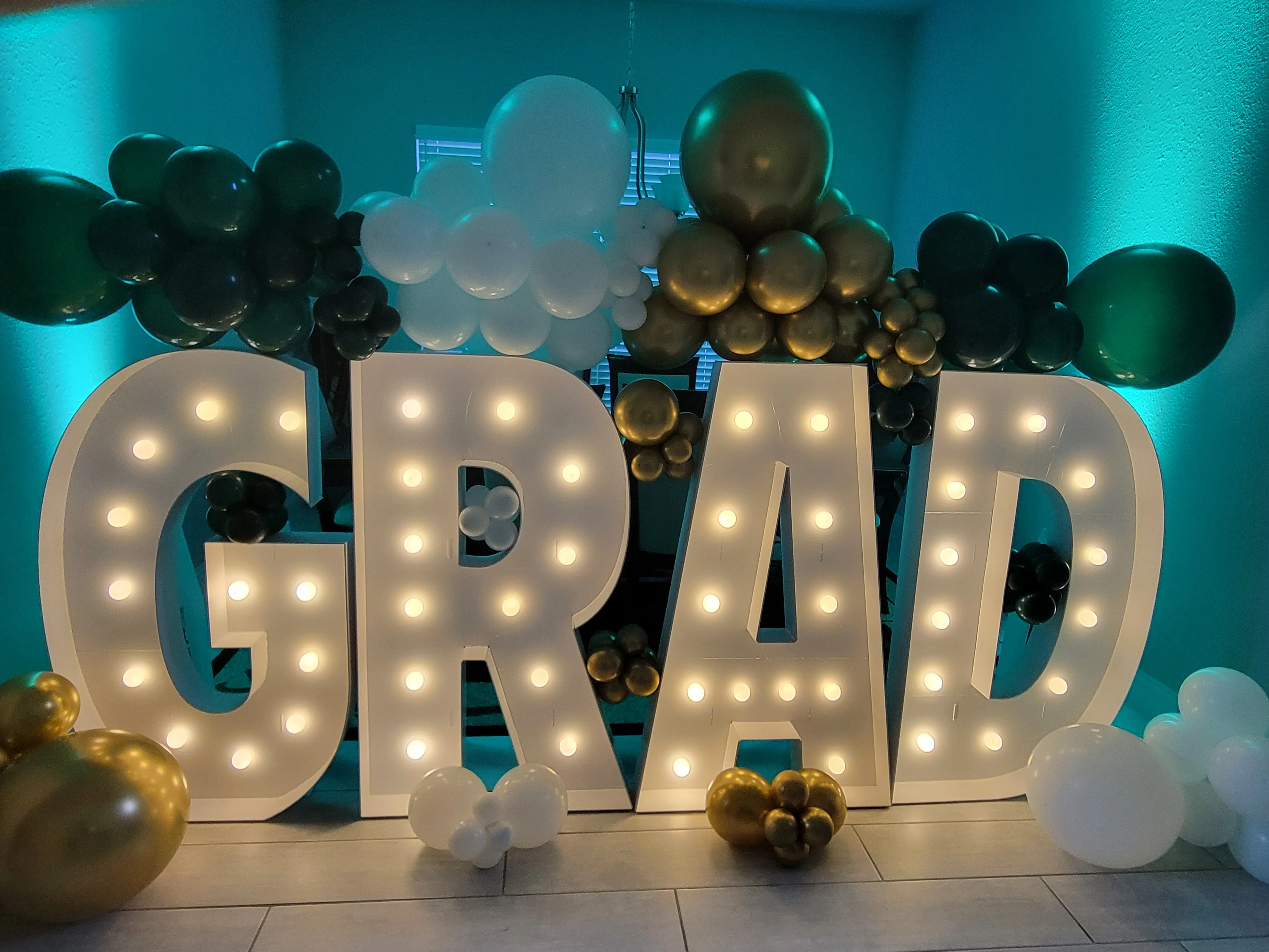 Letter marquees w/ balloons
