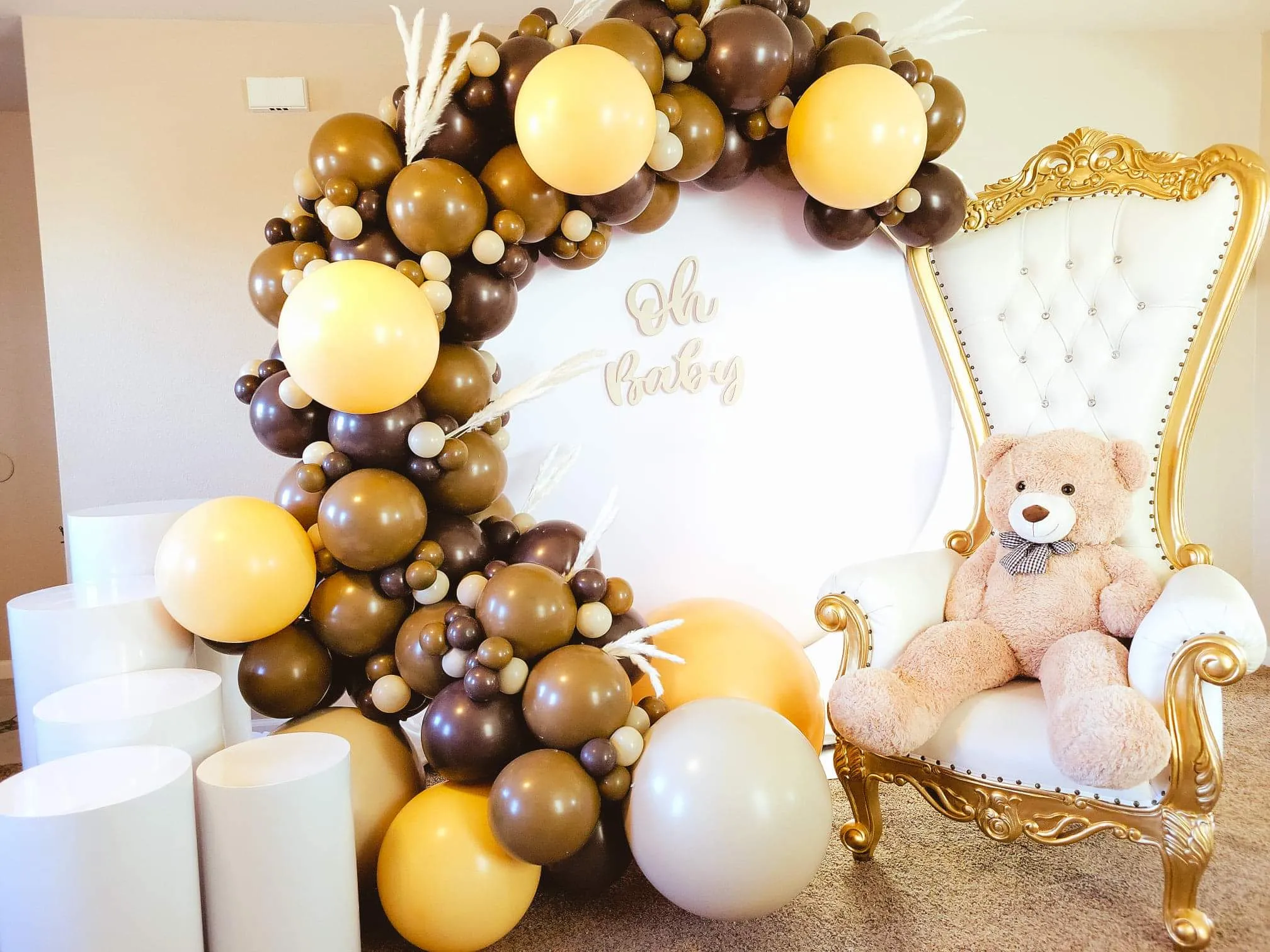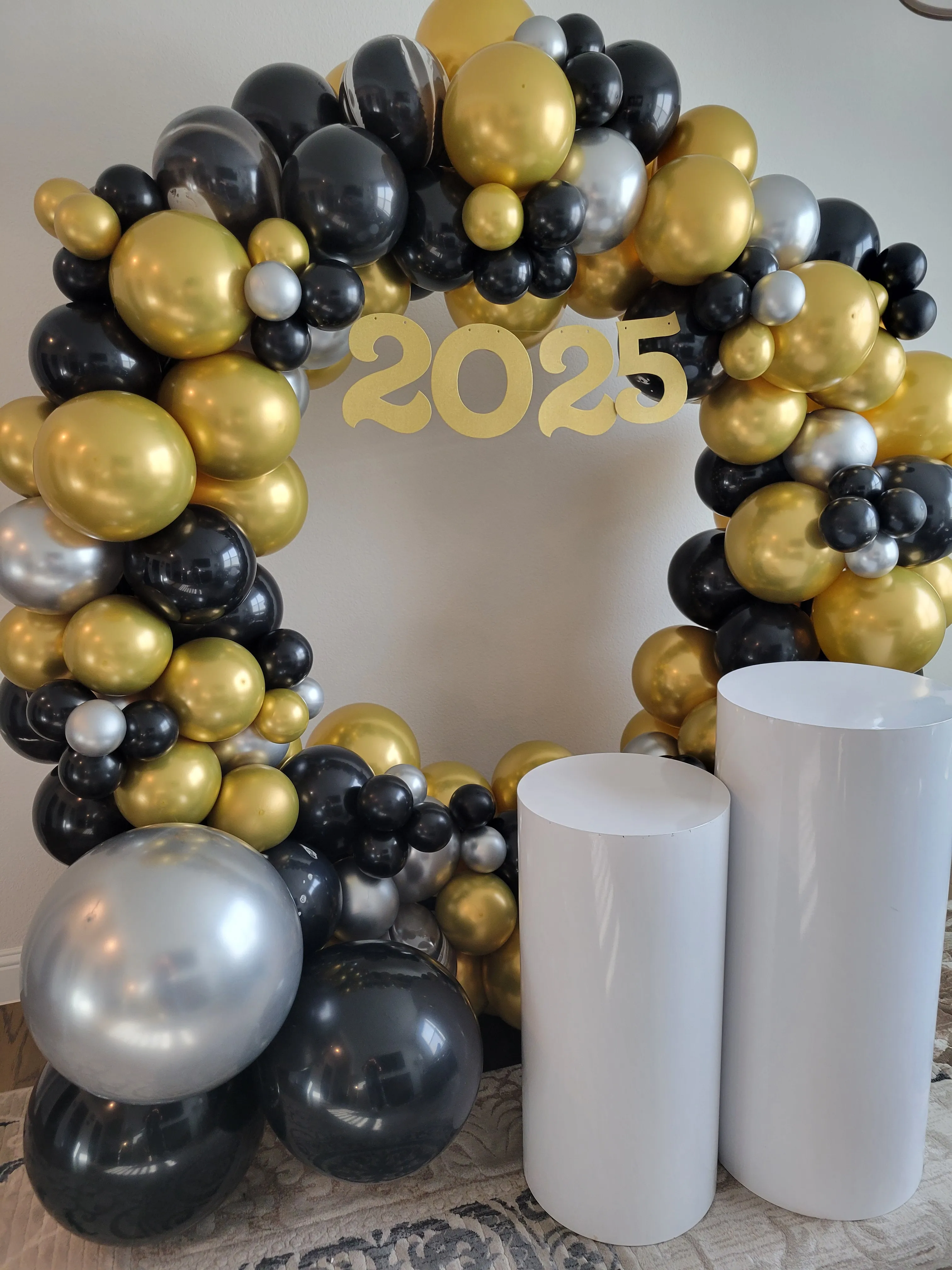 Round backdrop w/ balloons and cylinder stands